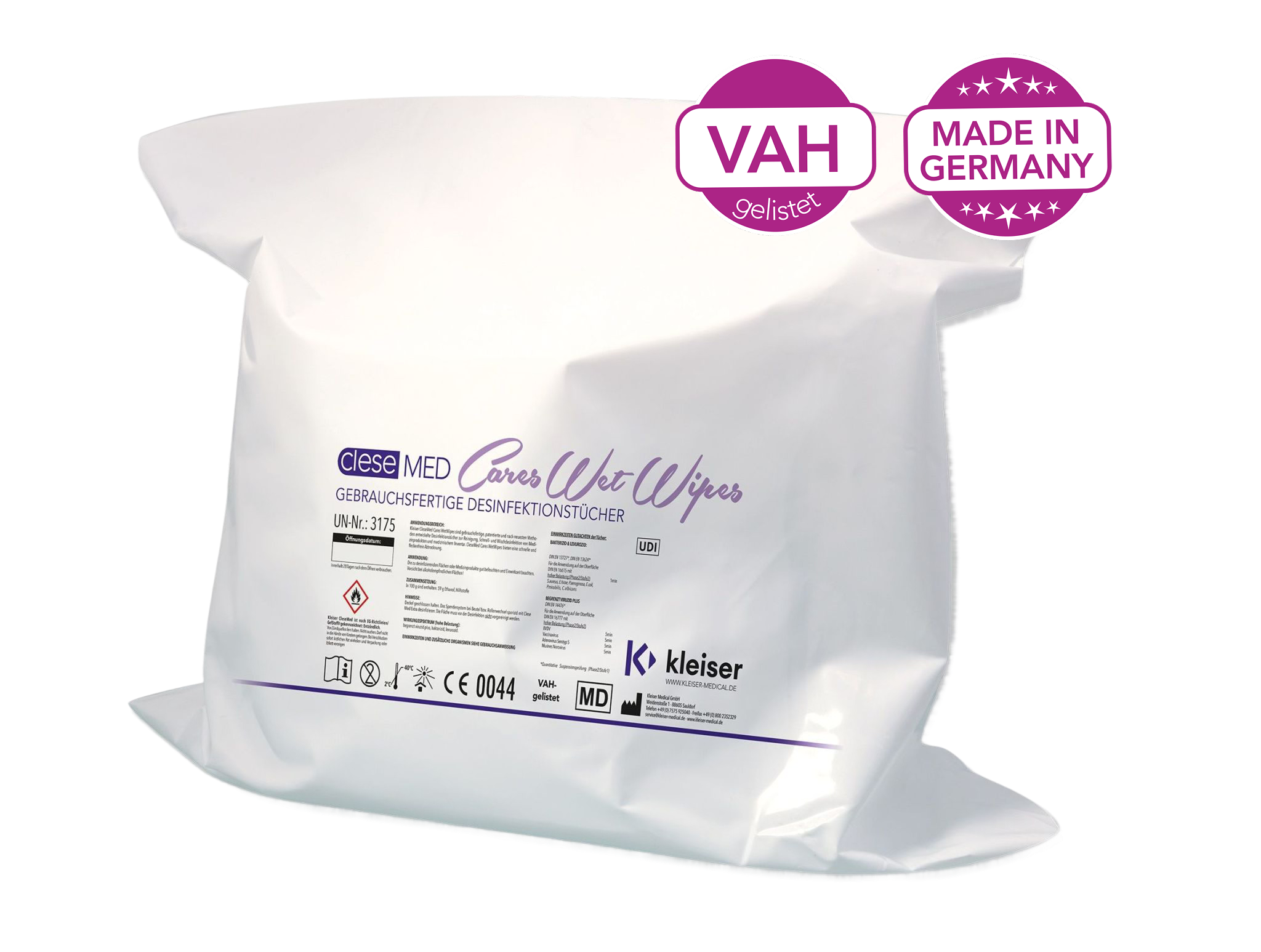 cleseMED Cares WetWipes bieten zuverlässige Reinigung und Desinfektion von Oberflächen in einem praktischen, gebrauchsfertigen Tuch.